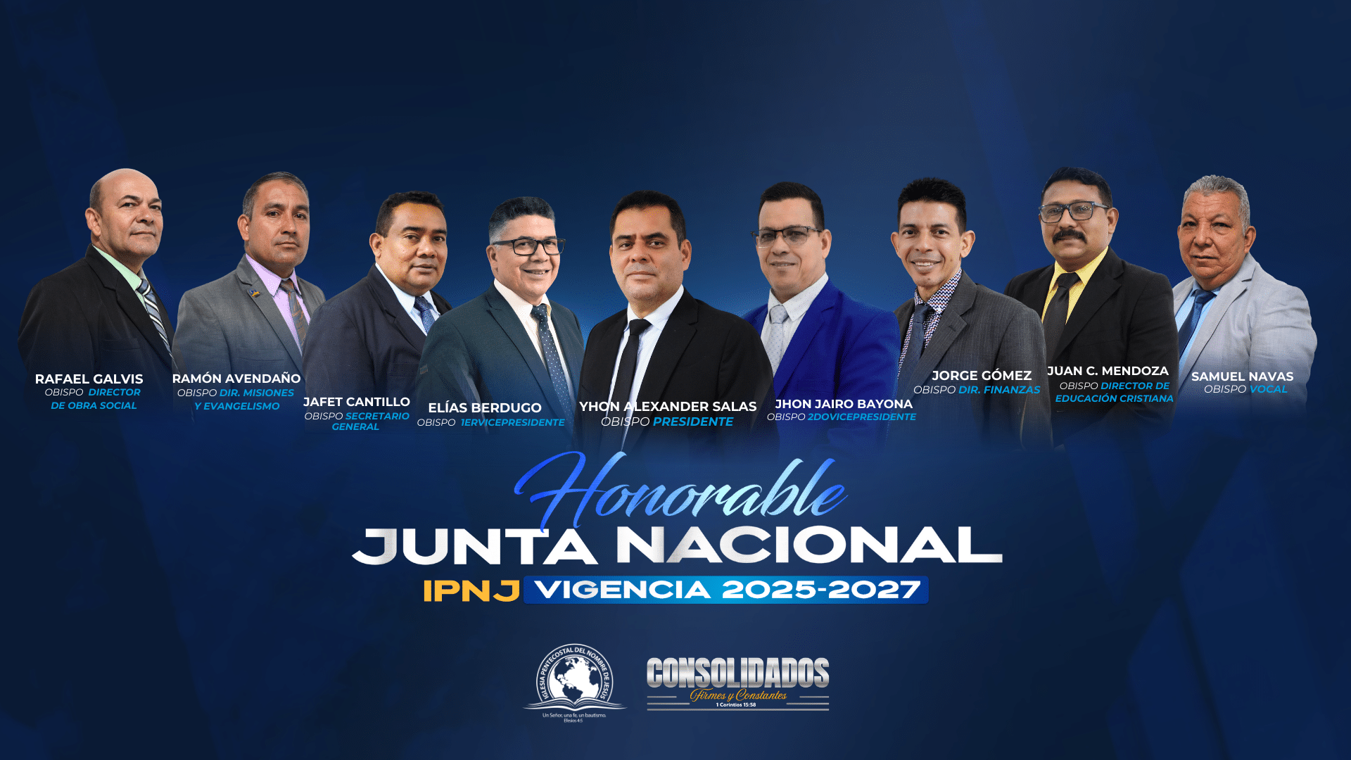 La Junta Nacional es la Junta Directiva de la Iglesia Pentecostal del Nombre de Jesús, y es su organismo administrativo y representativo. Y en compañía del Misionero enviado de la IPUC tienen la responsabilidad de tomar decisiones en todas las áreas que competen a la administración de la iglesia.